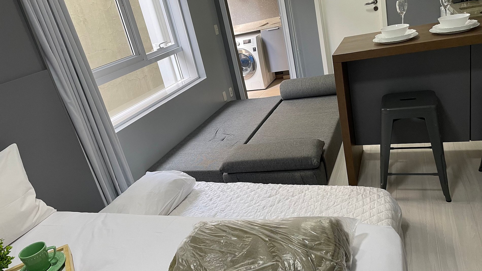 Stúdio inteiro disponível apenas para os hóspedes. A piscina , a academia , lavanderia e as demais áreas comuns do prédio estão disponíveis para os hóspedes!